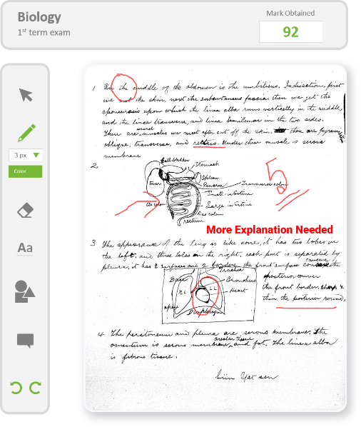Grading exams online is easy with Classtune. Using classtune, teachers can highlight portions that need to be corrected in addition to providing real-time feedback to students about their tests.