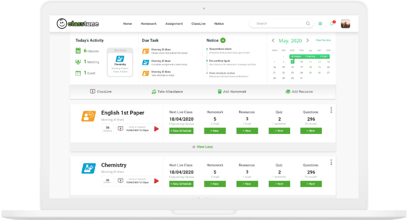 Classtune is a learning management system that helps administrators keep in touch with their employees, students, and parents. The LMS software allows management to keep track of how the session is doing by monitoring individual student and teacher profiles, which contain all class notices and updates.